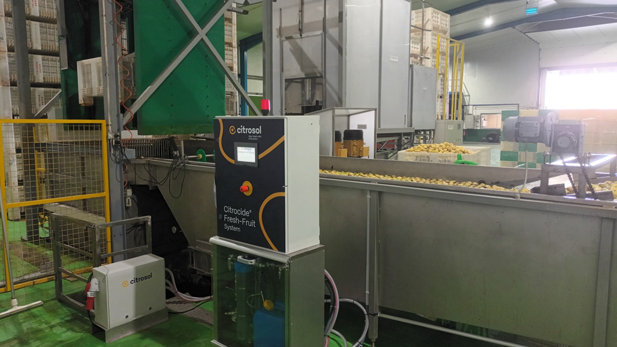 Por otro lado, Citrosol ha desarrollado y comercializa el Sistema Citrocide Fresh-Fruit, un robusto Sistema para la monitorización y el control automático de la desinfección del agua de las balsas de volcado de peras, que nos permite mantener el agua de proceso en buenas condiciones de higiene aplicando una solución peroxiacética. Con ello se consigue reducir la cantidad de inoculo en el agua evitando reinfecciones y por tanto podredumbres y eclamaciones en destino. Además, garantizamos la seguridad alimentaria del producto y ahorramos agua y energía, ya que el agua de proceso se mantiene en condiciones óptimas durante más tiempo logrando a su vez: