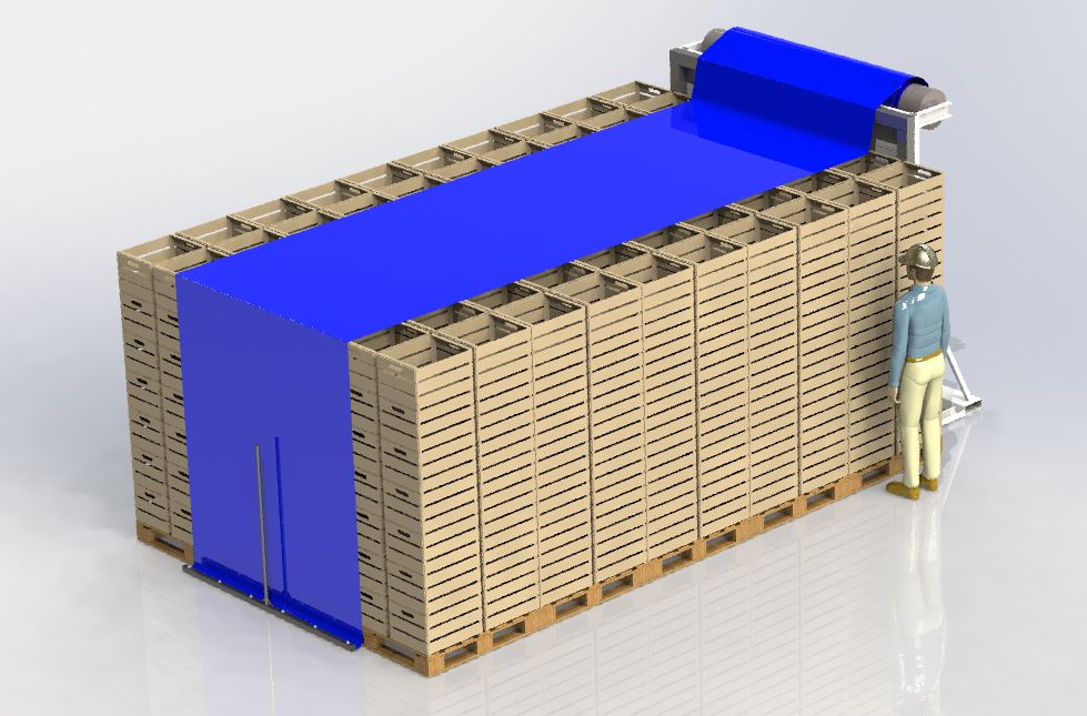 El sistema obliga a pasar todo el aire frío a través de los palots o palets que contienen las frutas u hortalizas. A diferencia de la refrigeración estática, el aire forzado penetra más rápidamente en el interior de la carga, logrando una extracción térmica rápida y uniforme. Esto lo convierte en una herramienta especialmente eficaz para productos sensibles al agua, donde la homogeneidad del enfriamiento es clave.