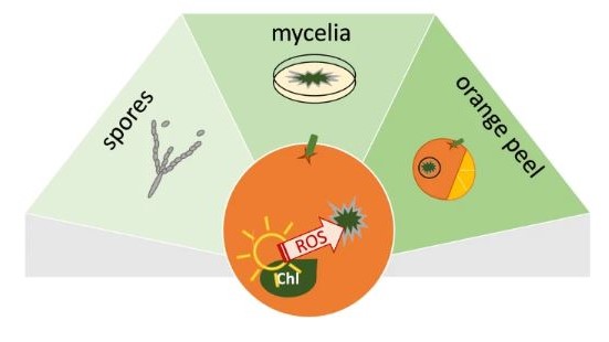 Se emplearán experimentos in vitro en tres sistemas modelo diferentes de Penicillium: (i) esferas miceliares, (ii) cultivos líquidos de esporas y (iii) un sistema experimental de nuevo desarrollo que consiste en tapones de cáscara de naranja. Para la iluminación, se probó luz LED (395 nm) o luz solar natural.