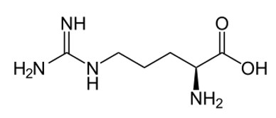 *Arginina o ácido 2-amino-5-guanidinopentanoico es un aminoácido polar básico, principal transportador de nitrógeno, participando en la síntesis de moléculas importantes como la agmatina, la creatina, la ornitina, el óxido nítrico, las poliaminas, la prolina, entre otras.