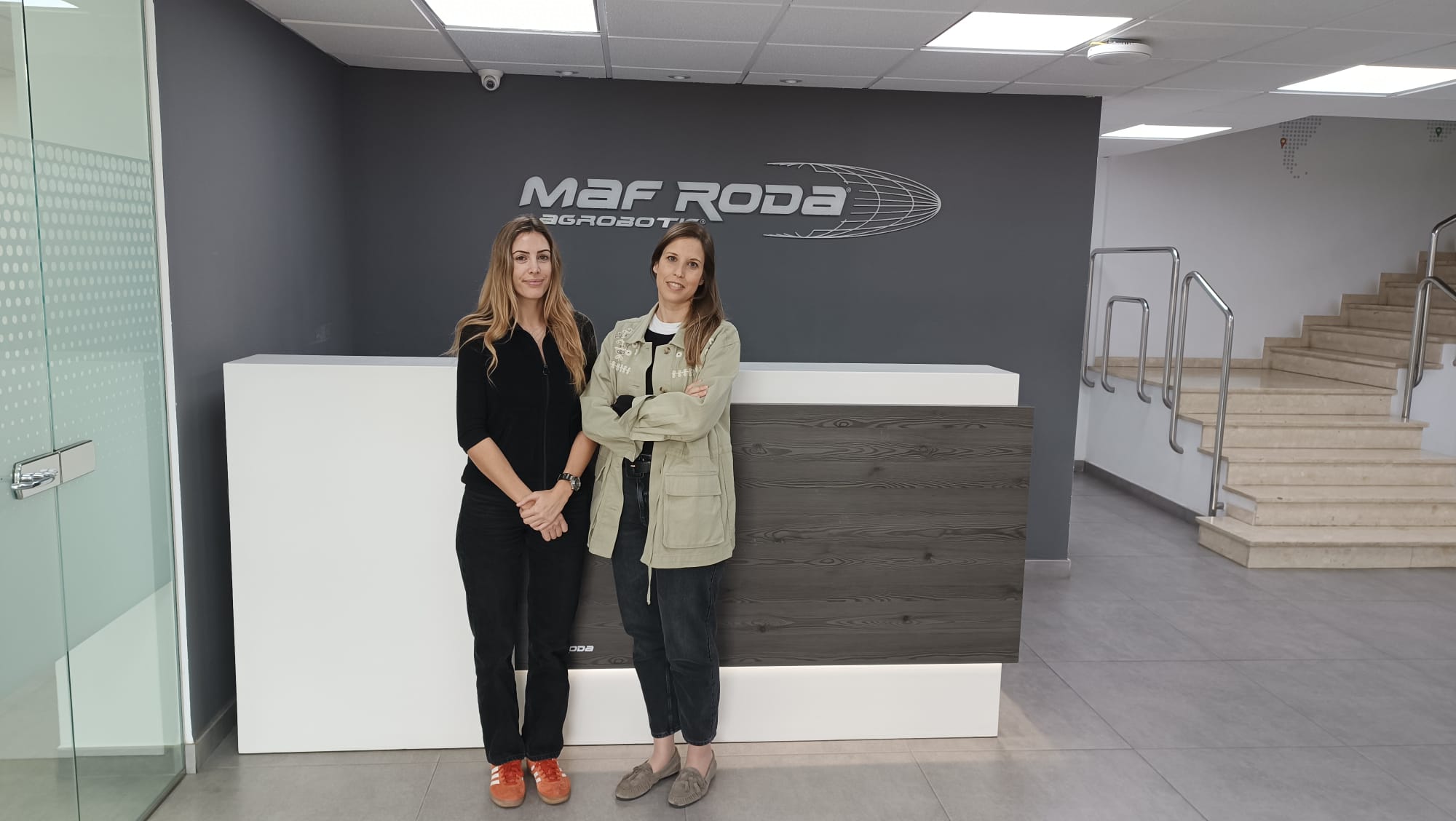 De izquierda a derecha, Claudia Sánchez, del equipo de marketing, y María Cabello, directora de Marketing de MAF RODA Agrobotic