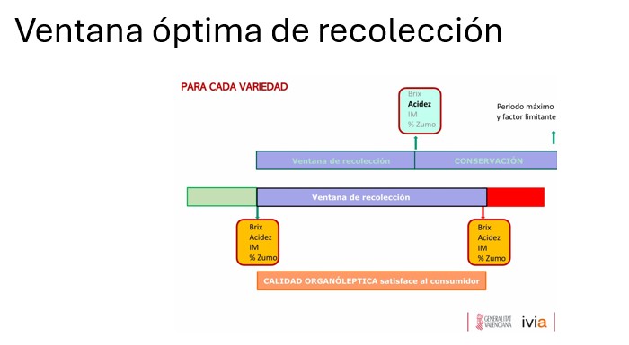 Ser capaces de alcanzar la máxima calidad abarca diferentes estrategias; una de ellas tiene que ver con el momento óptimo de recolección. Su determinación se enfrente a varios desafíos. Uno de ellos es los índices que se utilizan en algunas especies, como el del almidón en manzana, ven su validez cuestionada. También a tener en cuenta la "ventana de recolección óptima", que incluye, además de una fecha de inicio, una fecha de finalización, un concepto también expuesto por Cristina Besada, IVIA, en la IV Jornada Poscosecha de Cítricos.