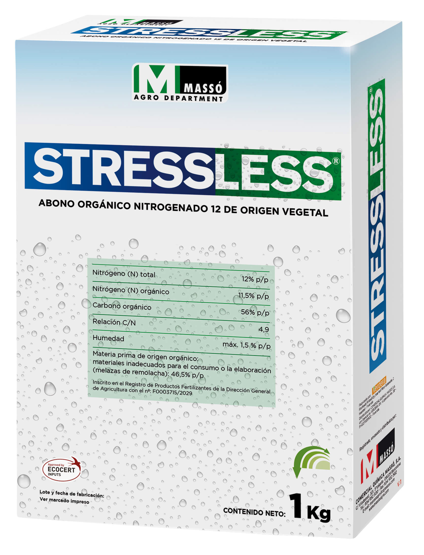 STRESSLESS® es una formulación a base de glicina betaína extraída de la melaza de remolacha; reduce el impacto adverso del ambiente sobre el cultivo (sequía, temperaturas extremas, salinidad, etc.), manteniendo el correcto funcionamiento fisiológico de la planta durante estas condiciones.