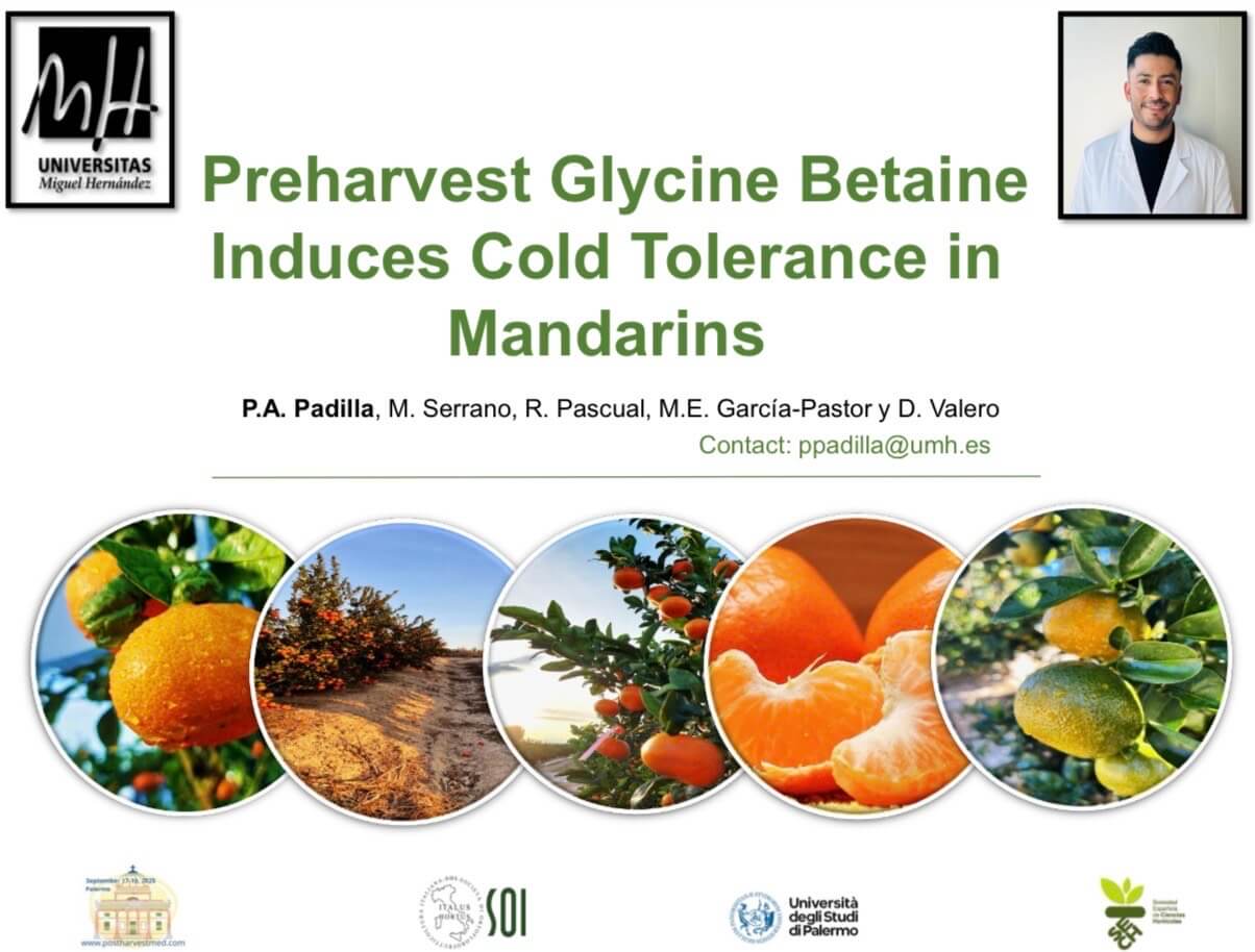 El estudio presentado por Pedro Antonio Padilla Glez, de la Universidad Miguel Hernández, Orihuela, España, durante PostharvestMED (Sicilia, septiembre de 2025), tuvo como objetivo investigar el impacto de la aplicación foliar precosecha de un fertilizante nitrogenado orgánico rico en GB (STRESSLESS®, derivado de la melaza de remolacha) sobre la calidad poscosecha de mandarinas 'Nadorcott' sometidas a almacenamiento prolongado en frío.